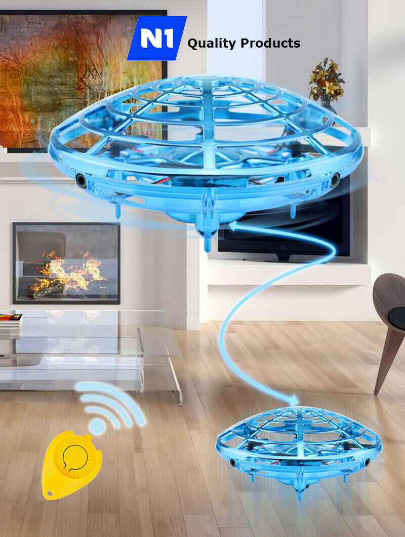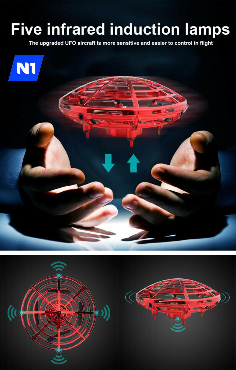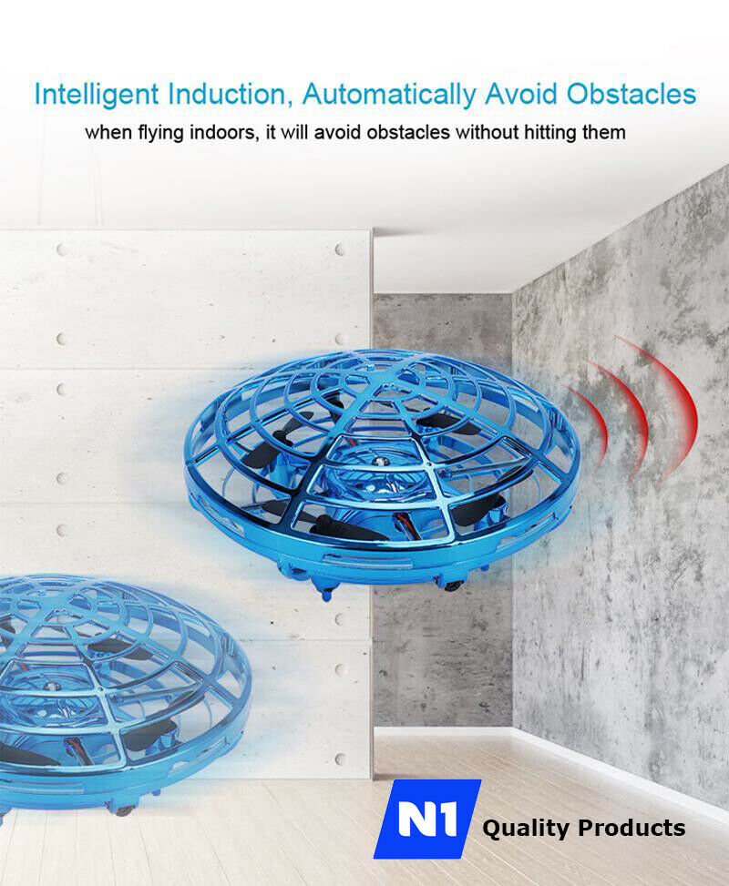 Throw to fly 360° self-contained rotation Rounded shaped protective guard Hand-sensing Directions control With Cool LED Light.